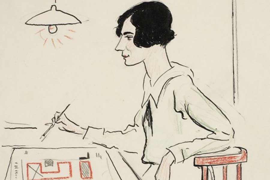 Fotoğraf: Margarete Schütte-Lihotzky, gezeichnet von Lino Salini. (Historisches Museum Frankfurt)