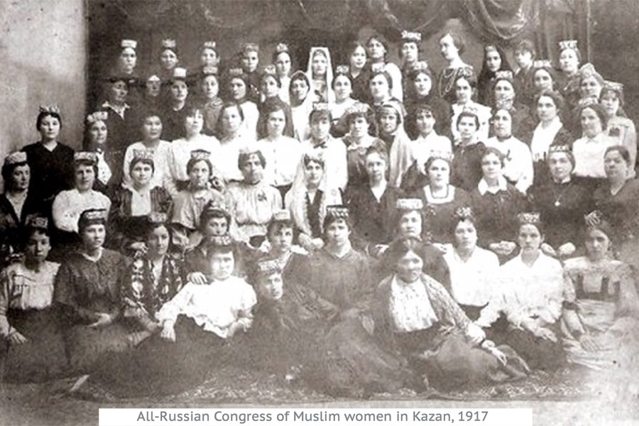 Kadının köleliğinin kaldırılması meselesi, sadece o büyük şehirde tartışılmıyordu. Şubat’ın getirdiği devrimci ruh, eski çarlığın ulaştığı topraklarda yayılmaya başlamış ve doğudaki Müslüman toplumlara da ulaşmıştı. Çağrısı yapılan Bütün Rusya Müslümanları Konferansı’ndan önce, 23 Nisan günü, Tataristan Kazan’da Bütün Rusya Müslüman Kadınlar Kongresi yapıldı. Orada, 59 kadın delege, çoğunluğu kadın olan 300 kişilik güçlü bir dinleyici topluluğunun önünde, ş̧eriat yasasının statüsü de dahil olmak üzere, çok eşliliği, kadın haklarını ve türbanı tartışmak için bir araya gelmişti. Muhafazakar dindar gruba karşın, ilerici gruplar ve Bolşevik kadınlar da delegeler arasındaydı. ‘Kadınların camiye gitme haklarının olup olmadığı, erkeğin birden fazla eşe sahip olma hakkının olup olmadığı’ üzerine çokça tartıştılar. Çıkan kararda çok eşliliğin onaylanmasına karşı gelen ilerici gruplar ve Bolşevikler, bir ay sonra yapılacak Bütün Rusya Müslümanları Konferansı’na katılmaya ve çok eşliliğe karşı kendi alternatif görüşlerini sunmaya karar verdiler. Bu konferansta geçen yoğun tartışmaların ardından, 8 saatlik işgünü, özel mülkiyetin kaldırılması ve geniş arazilerin kamulaştırılması gibi maddelerin yanına, kadınların oy hakkı ile hayata geçirilmesi yoğun çalışma gerektirecek olan çok eşliliğin ve peçenin yasaklanması gibi maddeler de eklendi.BURNAŞEVA, OBİDOVA VE DİĞERLERİ