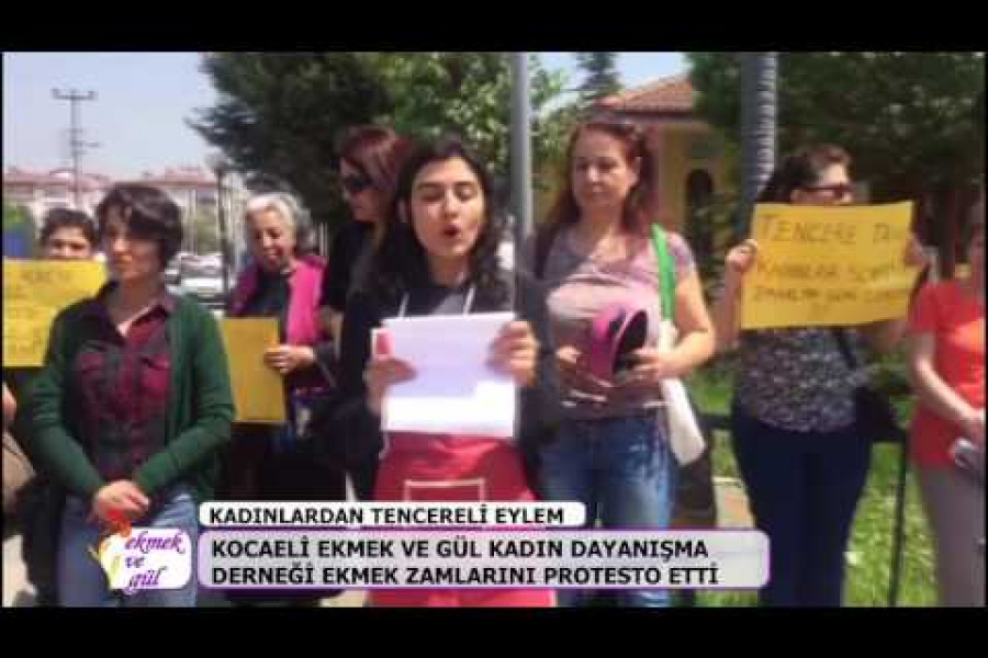 Kocaeli Ekmek ve Gül Kadın Dayanışma Derneği ekmeğe yapılan yüzde 25 zammın geri çekilmesi için tencere tavalı eylemle yaptı.