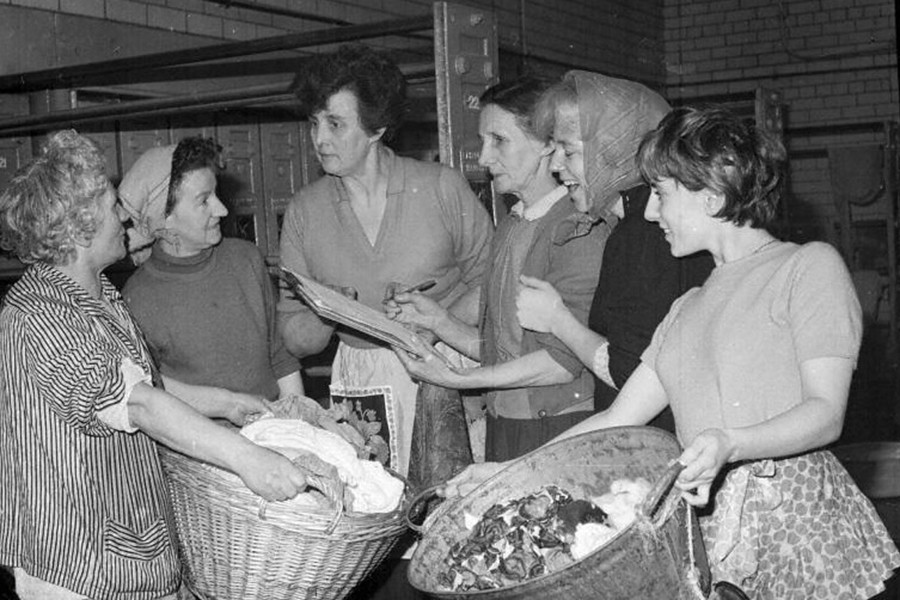 Yıkanmak ve çamaşırları, çarşafları yıkamak daha kolay olmuştu işçi sınıfı için. Fakat, kadınların üstlendiği yıkama işi, gerçekten emek isteyen bir işti. Öncelikle, bebek arabaları ya da el arabalarına doldurulan çamaşırlar yıkama yerlerine getiriliyor, yıkama sırası geldiğinde sabunlu sıcak suda çitileniyor, durulanıyor, sıkılıyor ve kurutma için ayrılmış odalara asılıyordu. Yıkama yerleri bu kadınlar için aynı zamanda sosyalleşme alanları demekti. Sevdikleri arkadaşlarıyla çamaşır gününü ayarlayıp birlikte yıkıyor, laflıyor, dedikodu yapıyor, işin yorucu yanını biraz olsun dindiriyorlardı. Bazı yıkama yerlerinde anneleri rahatça işlerini yapabilsin diye küçük çocukların oynayabileceği kreş türü yerler bile vardı.