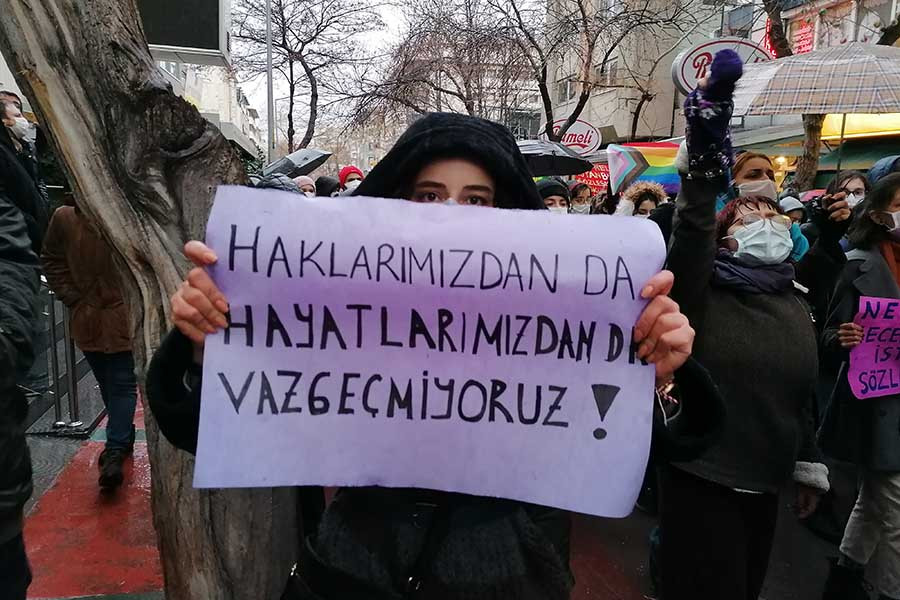 Konuştuğumuz kadınlardan biri, “Bu Sözleşme’nin uluslararası bir bağlayıcılığı vardı. Ülkeye hesap verme zorunluluğu getiriyordu. Şimdi tek bir kişinin kararıyla Sözleşme’den çekildik. Zaten ülkede kadın cinayetleri her geçen gün artarken bundan sonraki süreçte erkekler daha da cesaretle kadınlara şiddet uygulayacak, kadınları daha kolay öldürecek” diyerek tepkisini gösteriyor.