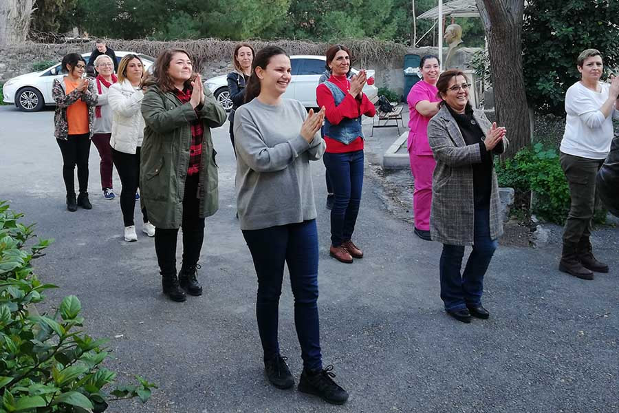 Genel-İş İzmir 7 Nolu Şube üyesi işçi kadınlar, sendika bünyesinde oluşturulan halk oyunları çalışması sayesinde haftada bir gün yan yana geliyor. İdlib’de yaşanan ölümler nedeniyle gösteri yapmama kararı alsalar da ekip çalışmalarına devam ediyor. Çünkü kadınların, hayatlarında kendilerine dair yaptıkları tek şey bu! Haftada bir gün de olsa, işten yorgun argın da çıksalar, evde işler birikse de bir araya gelmek onlara güç veriyor.