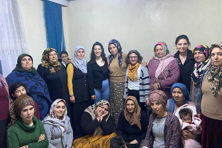 Akdere ve Vatan mahallelerindeyiz. Buralar 6 Şubat’ta yaşanan depremin etkilerinin sürdüğü, yoksul Kürt emekçilerin yoğun yaşadığı, kadınlarının kayıt dışı mevsimlik işçi olarak çalıştığı, tüm gün ceviz ve fıstık kırsa bile geçimini sağlayamadığı, kız çocuklarının yoksulluk sebebiyle okuyamadığı ve tarlada çalışmak zorunda kaldığı mahalleler. Deprem sürecinde Kız Kardeşlik Köprüsü ve dayanışmayla tanışan kadınlar bu birlikteliği bırakmamakta kararlı. Seçime de az bir zaman kaldığından bir hayli heyecanlılar.