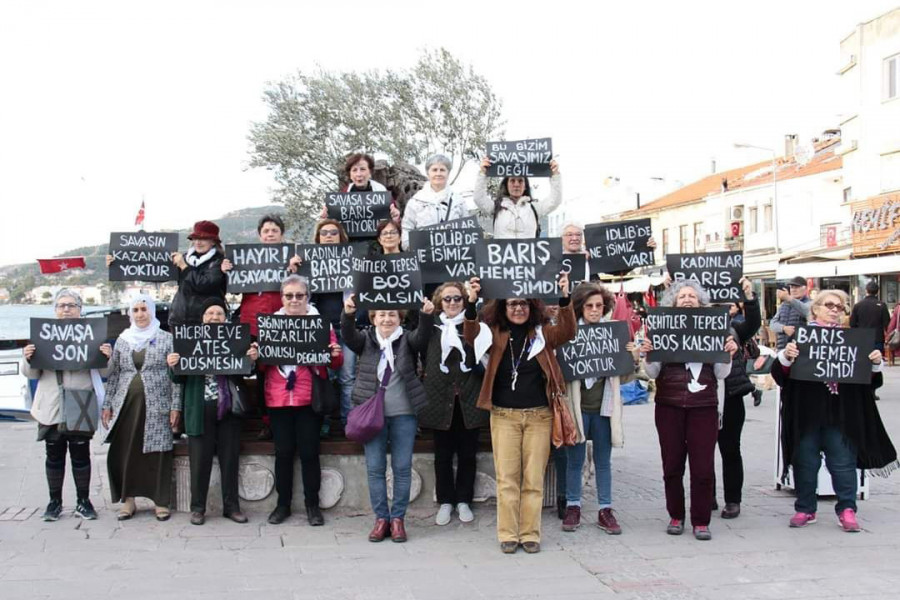 Konuştuğumuz kadınlardan Zehra’nın bir erkek çocuğu var. Zehra, “Sözün bittiği yerdeyiz, tam olarak söyleyeceğim bu” diyor kısadan... Konuştuğumuz kadınlardan birinin “Bu adamı biz başı-mıza getirdik, Ne yapalım?” dediğini söylediğimizde “Ne demek ne yapalım, mutlaka bir şeyler yapmalıyız. Çoluğumuz çocuğumuz için, kendi hayatımız, ülkemiz için bir şeyler yapmak zorun-dayız. Hiçbir şey yapmayınca ne olduğunu görüyoruz,” diyerek gösteriyor tepkisini. “Kendi ço-cukları tehlikede olmayınca nasıl da rahat, kimseye sormadan karar alabiliyorlar. Nasıl olsa kendi çocuğu yanında, güvende, garibanın, halkın çocuğu umurunda değil, haliyle fütursuzca kararlar alıp ahkam kesebiliyor. Başkalarının çocuğuna güvenerek savaşa giriyorlar. Artık bu savaşın bit-mesi lazım…” diyor.‘KORKTUKÇA DAHA KÖTÜ OLUYOR HER ŞEY’