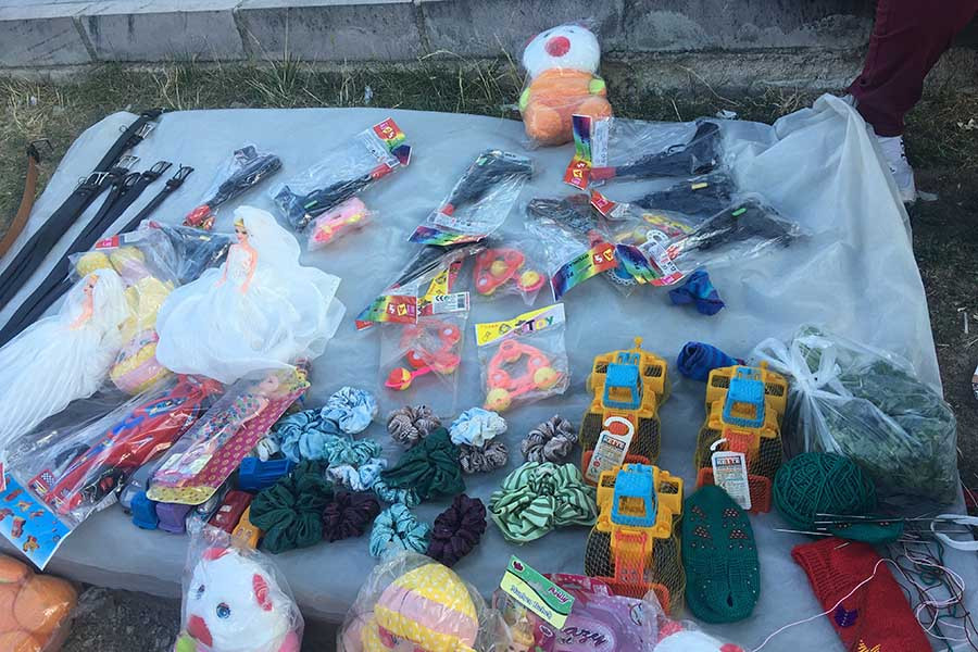 Ayşe pazarda lif örerek, el işi tokalar yapıp satarak geçimini sağlamaya çalışıyor. İki sene önce eşi ve 2 çocuğuyla Iğdır’dan Ankara’ya yerleşmişler. Eşinin kardeşinin Ankara’da yaşaması nedeniyle buraya geldiklerini ve gelirken iş bulma umutlarının yüksek olduğunu anlatıyor: “İş bulmak için kalktık, geldik ama öyle olmadı. Kocam işsiz, ben pazarcılık yapıyorum. Ama burada da rahat yok ki. Zabıta sürekli gelip kalk diyor, pazarın girişiymiş burası. Burada tezgah açılmaz diyor ama burada kimseyi rahatsız etmiyoruz ki.” Neden pazarın girişinde tezgah açtığını sorduğumuzda ise, “Çocukları bırakacak kimsem olmadığı için onları da getiriyorum. Pazarın içinde olunca meyveleri görüyorlar, canları çekiyor, alamıyorum. O yüzden girişe kuruyorum tezgahı” cevabını veriyor. Büyük şehre iş bulma umuduyla geldiğini ama çocuklarına meyve dahi yediremediğini anlatıyor.