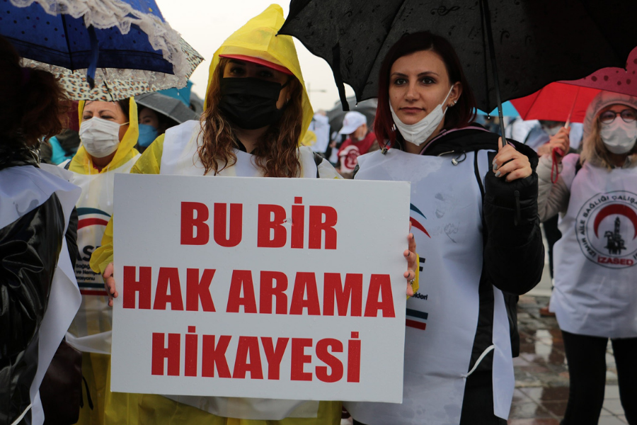 Başka bir fabrikada haklarını alabilmek için uzun süre direnişte kalan Demet, “Daha önce çalıştığımız fabrika kadınlar için cehennemden farksızdı. Üzerimizde sürekli sayı baskısı yapıyorlardı. Tuvalete gidişlerimiz hesaplanıyordu. Çoğunluğu kadın işçiler olmasına rağmen izin kullanacak olsak ustalar bizi aşağılamaya başlardı. ‘Ben diyorum, kadınları çalıştırmayın onlar sürekli mızmızlık çıkartır, işe gelmemek için bahane bulurlar’ diye bağıra bağıra konuşurdu. Biz de pandemide zam talebi için direnişe geçtik. 35 işçiyi işten çıkardılar ama biz yılmadık ve direnmeye devam ettik ve o zammı aldık. Ben daha sonra küçülme gerekçesiyle, aslında biraz bahane de edilerek işten çıkartıldım. Şimdi yine bir fabrikadayım ve fazla mesai yapmadan asla yetemiyorum. Bu fabrikada kadınların sayısı epey var ve hepsi ‘Yeni bir iş bulamayız’ diyerek çok korkuyor bir şey yapalım deyince. Haklılar, çünkü 30 yaşın üstünde artık hiç kimse iş bulamıyor” diyor.