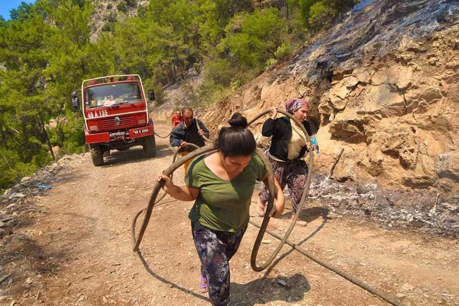 Bunda biz emekçilerin, halkın payı ne peki? Güvercinlik’teki Pina yarımadasının yanan çamlarını imara açıp lüks oteller inşa etmek, Bodrum-Milas sahil hattındaki Kızılçam ormanlarının arasına termik santral yapıp, sonra bunu özelleştirip özel şirketlere peşkeş çekmek, THK’nin yangın söndürme uçaklarını ıskartaya çıkarıp günlüğü 1.3 milyona 3 tane Rus uçağı kiralamak, son üç yılda en az 17 bölgede kıyılar, ormanlar, meralar hakkında acil kamulaştırma ve özelleştirme kararnameleri yayınlamak, doğal varlıkları maden, turizm ve inşaat şirketlerinin yağmasına açmak… Bu kararları yerli köylüler, orman işçileri ya da turizm emekçileri mi aldı? Tabi ki hayır!