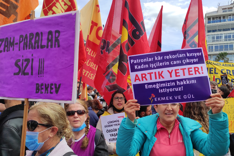 Sancaktepe’deki okulları dolaşın tüm acı tabloyu görürsünüz. Çocuklarımıza harçlık veremez haldeyiz. İkinci el kitap, defter alacak durumumuz bile yok. Sadece kuru ekmekle beslenen onlarca çocuk var. Ben bizzat şahidim. Tahin helvası, tavuklu patates yemeği çıktığında sadece benim vardiyamda 20 kadın işçi ekmek içine veya plastik saklama kabına koyarak eve götürüp onunla çocuklarının beslenme çantasını dolduruyor. Ekmek ve Gül’ün başlattığı “bir öğün ücretsiz yemek, sağlıklı yemek haktır” kampanyasını canı gönülden destekliyorum. Bu kampanya çok doğru ve yerinde bir kampanya. Ekmek ve Gül dergisini ve Evrensel gazetesini okuyup gerçekleri öğreniyoruz. Kadın işçiler olarak aramızda da konuşuyor ve tartışıyoruz. Fabrika müdürü ve ustabaşılar bunları okumamamız yönünden bizi tehdit ediyor. Patronlar sırtlarını hükümete dayayıp aldıkları teşviklerle, yapıkları ihracatlarla milyon dolarlar kazanıyorlar. Plastik eldiven, tıbbi enjeksiyon üretiyoruz. Çok kâr elde edilen ürünler bunlar. Biz yoksulluk çekiyoruz, pazarın bitimine çürük çarık meyve almak için gidiyor, çocuklarımızın beslenme çantasına kuru ekmek, çeyrekten az simit ya da evde yaptığımız bir iki poğaça koyabiliyoruz. Ek zam yapın, ücretlerimizi artırın dediğimizde, “Yeni yılda asgari ücret artacak bakalım o zaman çalışabilecek misiniz?” tehditlerine maruz kalıyoruz. İşsizlik kılıcı tepemizde sürekli. İstiyorlar ki hep biat edelim, her şeye razı olalım. Artık kaybedecek hiçbir şeyimiz kalmadı. Korkunun ecele faydası yok sözü doğru bir söz. Öyle bir an gelecek ki işçilerin ezici çoğunluğu sokağa çıkacak ve avazı çıktığı kadar bağıracak. Kuru ekmek ne biz doyabiliriz ne de çocuklarımız. Bize bunu reva görenlere karşı birleşip mücadele edeceğiz. Kadınlar olarak bunu başarabiliriz.