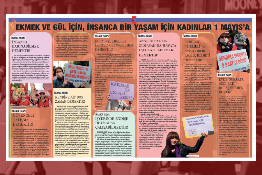 Bir diyoruz ki; bugün insanca bir iş günü tarif edeceksek günde 7 saati, haftada 35 saati geçmemeli. Haftanın 2 günü, bir yılın 30 ila 40 günü kesintisiz dinlenme süresi olmalı. Kadınlar günde 7 saat çalışmalı, bakım hizmetini devlet sunmalı, ev işleri o evde yaşayan herkesle eşit paylaşılmalı ve kadınların kendilerine ait bir zamanları olmalı! Canımız ne isterse onu yapabileceğimiz bir zaman!