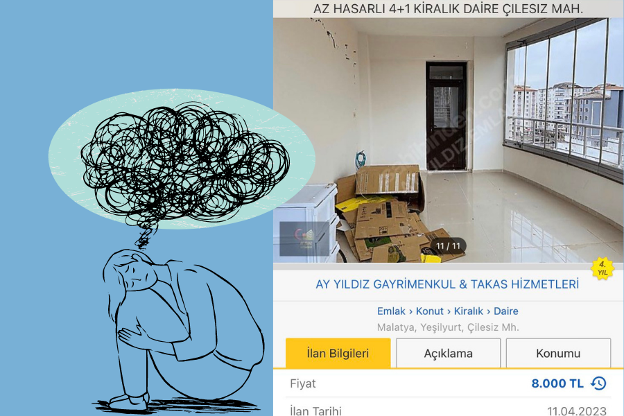 Birkaç ay önce “Evine erkek girmeyecek değil mi? Eğer girecekse veremeyiz ev, versek de attırırlar seni evden” diyen emlakçılara rağmen kendim için bir ev bulmuş, huzurla yerleşmiştim. 6 Şubat günü yaşanan depremler ile ben de herkes gibi evsiz kaldım. İlk günler yardım işlerine koşturmaktan ne yapacağımı düşünmeye hiç fırsatım olmamıştı. Ev sahibimin de evi yıkıldığı için zar zor kiraladığım evden çıkarıldım. 2 ay sonunda evsiz kaldığım gerçeğiyle yüzleştim. Kadın olduğum için savaşmak zorunda kaldığım emlakçıların yerini artık gözü para bürümüş, depremi fırsata çeviren ev sahipleri almıştı. Kiralık ev bakmaya başladığımda 8 bin lira gibi kiraları gördükten sonra, ev bakmaktan vazgeçtim.