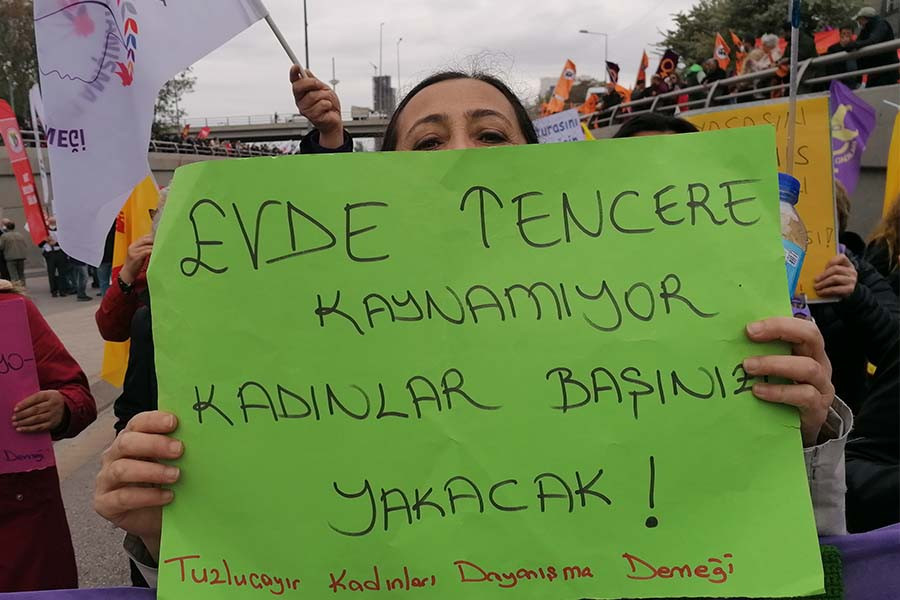 İşten öncelikle kadın işçilerin çıkarıldığına dikkat çeken Neşe’nin sözleri şöyle: “Patron, eşlerimiz çalışıyor bahanesiyle öncelikle kadınları işten çıkardı. Eşim büyük bir sitede elektrikçi, asgari ücret alıyor. Oğlum üniversiteyi bitirdi, bir yıldır işsiz, evde. Eşimin aldığı, kira ve faturalara anca yetiyor. Ben çalışmazsam açız. Ha çalışınca ne oluyor? Sadece karın doyuruyoruz. Kıymanın kilosu 120 lira, 5 tavuk but 75 lira, karpuz dilimle satılıyor. Eti unuttuk, meyveyi unuttuk.”