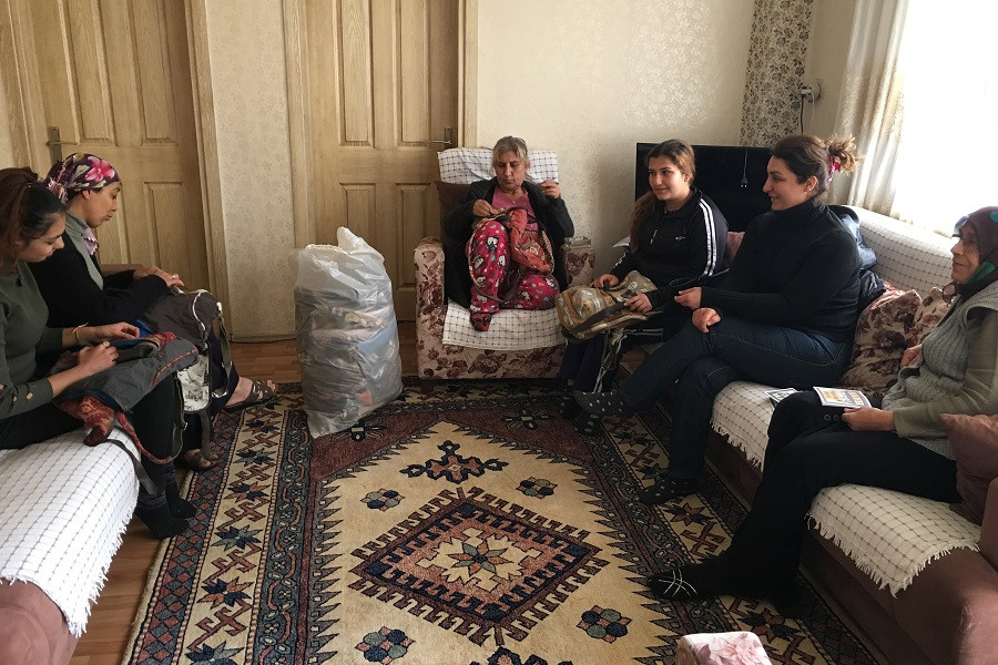 Ev sahibimiz Aslı, 42 yaşında. Kendini ev kadını diye tanımlıyor, ama aslında evde parça başı iş yapıyor. Şu anda evde çantaların iplerini kesiyor. “Çok hızlı yapmamız lazım; ben, annem, teyzem, iki kızım sabahtan akşama kadar günde en fazla 200 çanta temizleyebiliyoruz” diyor. “Oooo bayağı temizliyormuşsunuz, bu kadar kişi çalıştığınıza göre günlük yevmiyeniz ne kadar?” diyoruz. Gülümsüyor, “Çanta başı 20 kuruş alıyorum, 5 kişi bütün gün uğraşıyoruz, elimize geçen para 40 TL” diyor, “Eskiden paramızı günlük alıyorduk, şimdi 15 gün sonra veriyorlar. Bu parçalar da bitsin, artık çanta işini yapmayacağım.” Daha önce de evde mantı yapıp satıyormuş, “O iş bundan daha karlıydı, eğer yine o işten bulabilirsem yapacağım” diyor geçim derdinden yakınırken.Yaklaşan seçim için ne düşündüğünü soruyoruz. “Ben ‘hayır’ diyeceğim, her gün geçim biraz da zorlaşıyor. Her şeyin kontrolünün bir adama bırakılmasını doğru bulmuyorum” diye yanıtlıyor.
