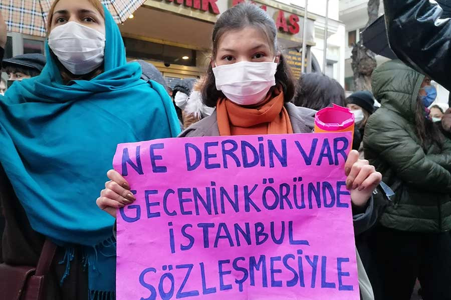 Sendikalı bir tekstil fabrikasında çalışan kadın işçi, iş yerindeki tartışmayı şöyle aktarıyor: “Yemek molasında konuştuk. Farklı partilere oy veren kadınlar vardı, aynı masada yemek yiyorduk. Ben laf attım. ‘Bakın bir gece yarısı Sözleşme’yi iptal ettiler’ dedim. Uzun bir sessizliğin ardından bir kadın arkadaş ‘Ya zaten uygulanmıyordu ki pek fark etmedi benim için’ dedi. Bir diğeri ‘Kadınlar bunu çok abartmıştı. En ufak tartışmada karakola koşuyordu. Ne oluyor o yuva? Küçük bir sebepten bozuluyordu’ dediğinde buna başka bir işçi kadın itiraz etti; ‘Ne alakası var? Hiçbir kadın durup dururken karakola gitmez. Ama bence daha çok dini değerlerimize pek uymuyor. LGBT’liler yüzünden kaldırıldı’ dedi ve tartışma sona erdi.”