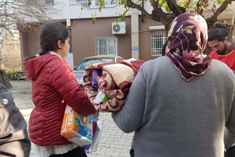 6 Şubat sabahı erken saatlerden itibaren işyeri sendika mesaj gruplarında yazışmalar başladı. Yaşanan felaketten dolayı derin üzüntü içinde olan kadın sağlık işçileri birbirlerine aile ve yakın çevrelerini sormakla yetinmiyor, ne yapabileceklerini soruyorlardı. İşçiler sürekli “Bizlerin yapabileceği bir durum olur ise haber edin arkadaşlar” diyordu. Kelimenin tam anlamıyla elinde avucunda ne varsa paylaşmaya hazırdı herkes. Uyumaktan uyanmaktan, “Üşüdüm” deyip ısıtıcıya yakın oturmaktan, “Acıktım, susadım” demekten utanmaya başlamıştı insanlar.