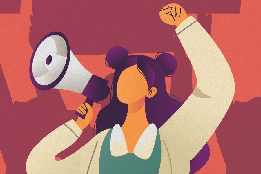 Kadınlar böyle yaşamayacak! Yanındaki kız kardeşine, sınıf kardeşlerine sırtını dayayarak üzerindeki şimşekleri dağıtacak...