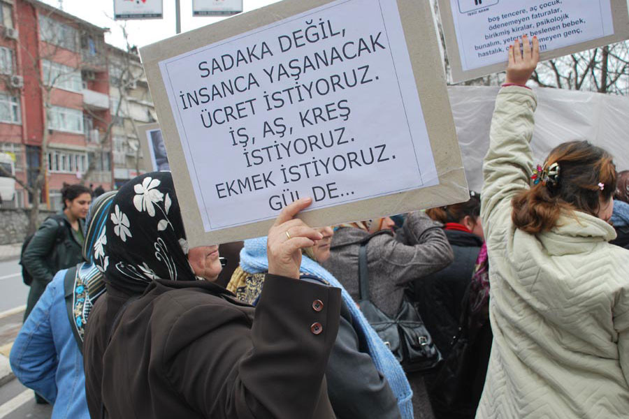 Türkiye’de DİSK-AR’ın raporuna göre işsizlik 18 milyona dayanırken, ekonomik kriz ve pandemi dönemi en çok kadınların istihdama katılımını etkiledi. Kadınların erkeklere göre daha fazla dönüşümlü çalıştırılan, yıllık izne çıkartılıp, kısa çalışma ödeneği ile çalıştırılan taraf olduğu sendikaların raporlarına da yansıdı. Bu sayıların gerçekliğini mahallemiz Tuzluçayır’da görmek mümkün. Çok sayıda kadın bu dönemde işini kaybetti ya da izne çıkartıldı. Derneğimize pandemi öncesine oranla çok daha fazla kadın yardım talebiyle geliyor. Derdini, sorununu, eve ekmek alabilmek için ne mücadeleler verdiğini anlatıyor. İşte birkaç örnek…