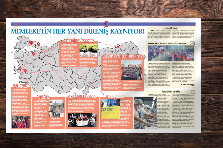İzmir’de Çiğli Belediyesi işçileri “tasarruf tedbirleri” bahane gösterilerek işten atılmalarına karşı uzun bir süre direnişteydi. Dersim’de Nazımiye Belediyesi belediyede çalışan 4 kadını birden işten çıkartmıştı; işçiler bunun için belediye önünde bir aradaydı.