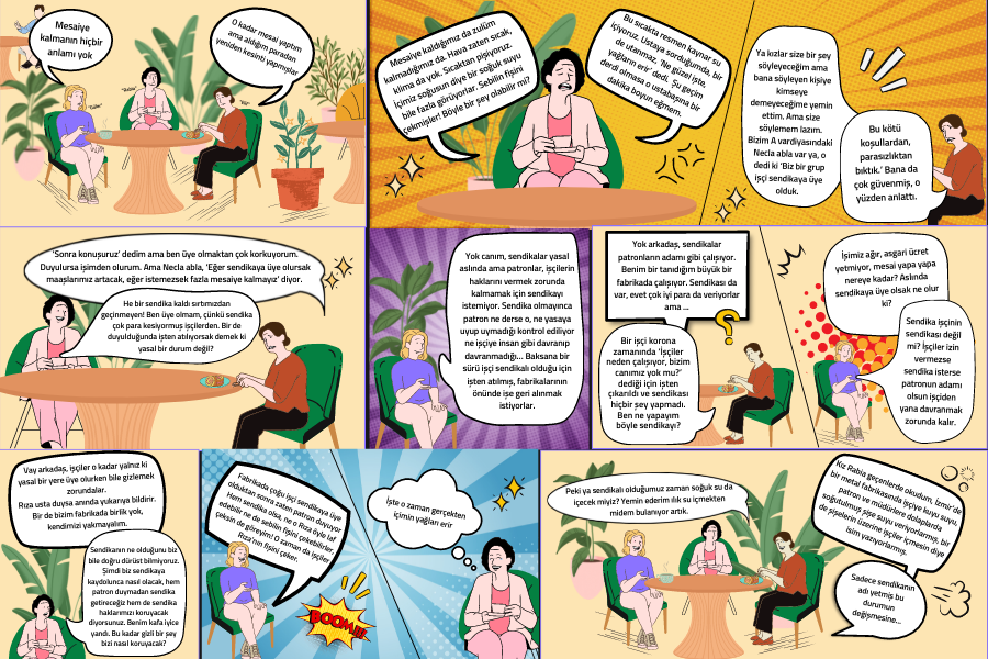 Rabia: Vay arkadaş, işçiler o kadar yalnız ki yasal bir yere üye olurken bile gizlemek zorundalar.
