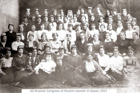 59 kadın delege kadın güçlü bir dinleyici topluluğunun önünde, ş̧eriat yasasının statüsü de dahil olmak üzere, çok eşliliği, kadın haklarını ve türbanı tartışmak için bir araya gelmişti.