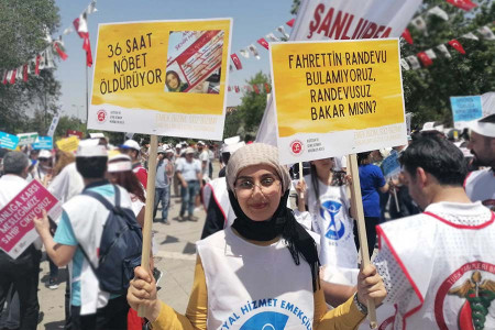 Sağlık emekçileri mutsuz ve tükenmiş durumda. Bıçak eti de geçti kemikte. Güzel günler için mücadeleye devam etmemiz ve umudumuzu kaybetmememiz gerektiğini düşünüyorum.