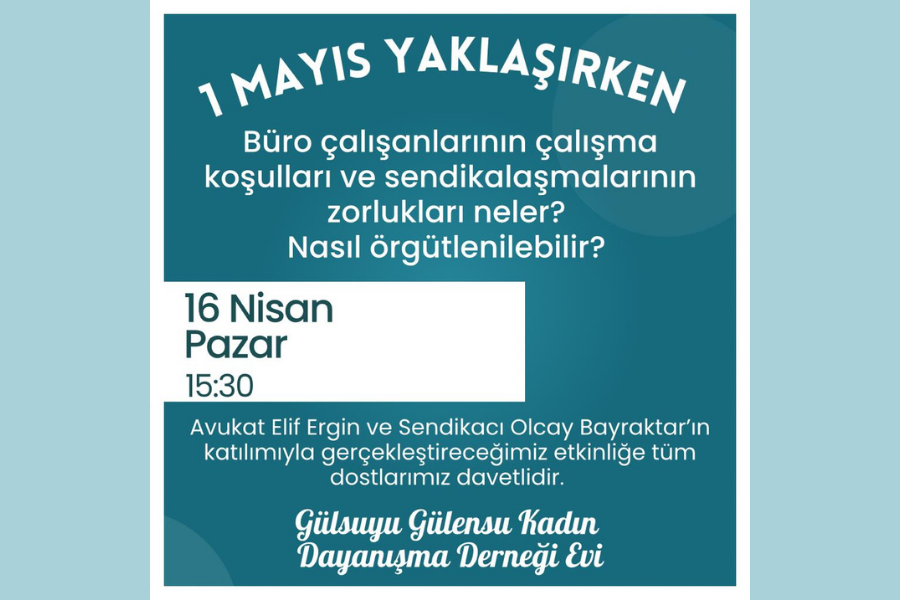 Gülsuyu Gülensu Kadın Dayanışma Evi Derneği, 1 Mayıs yaklaşırken büro çalışanı kadınların çalışma koşullarını ve sendikalaşma olanaklarını konuşmaya çağırıyor.