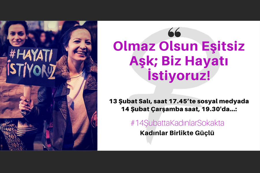 Bu 14 Şubat’ta, en büyük zenginliğimiz olduğunu bildiğimiz kadın dayanışmasıyla yine sokaklardayız. Çünkü şiddetle, zorla, baskıyla, dayatmalarla bir dahası olmayan hayatlarımızın kuşatılmasına isyanımız var. Alınan hediyeler, verilen sözler, şaşaalı kutlamalarla değil; dayanışmayla, özgürlüklerle, eşitlikle biz çoğalıyoruz. Ve hep birlikte,
