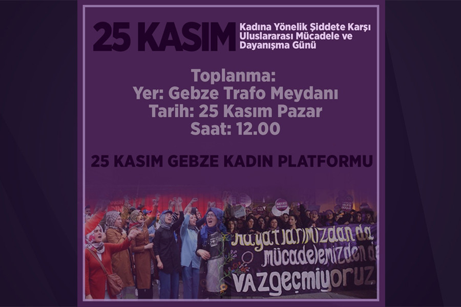 Kadınlar 25 Kasım 2018 Pazar günü saat 12.00'de Gebze Trafo Meydanı'nda olacak.