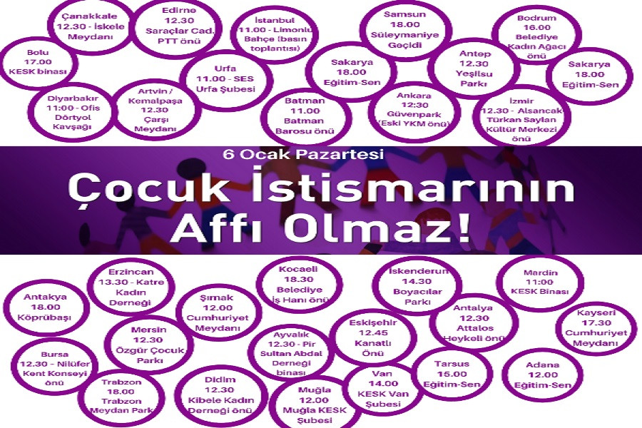 İktidarın, küçük yaştaki kız çocuklarına karşı istismar suçu işleyen erkeklerin bu kız çocuklarıyla evlenerek istismar suçundan affedilmesine yönelik tasarı hazırladığı ve tasarının 14 Ocak Salı günü Meclisin açılmasıyla birlikte görüşüleceği tartışmalar arasında. Daha önce pek çok kez gündem edilen ve kadınların tepkileriyle geri çekilen tasarıya karşı kadın örgütleri yasa tasarısına/affa yönelik itirazlarını paylaşacak. 6 Ocak'ta 30'u aşkın yerde buluşacak olan kadınlar, “Çocukların Cinsel İstismarının Affı Olmaz” diye haykıracak.
