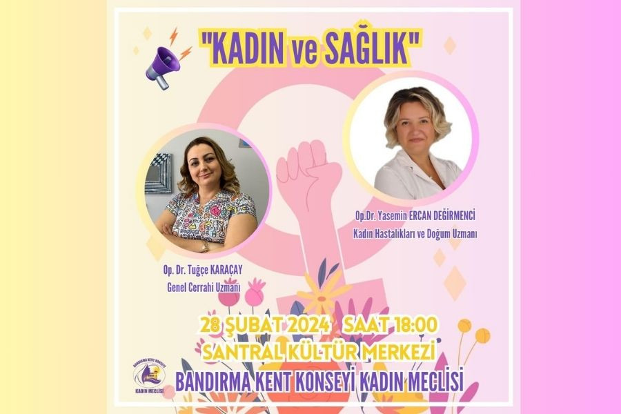 8 Mart etkinlikleri kapsamında Bandırma Kent Konseyi Kadın Meclisi çağrısıyla Bandırmalı kadınlar, ‘Kadın ve Sağlık’ başlıklı etkinlikte buluşuyor.