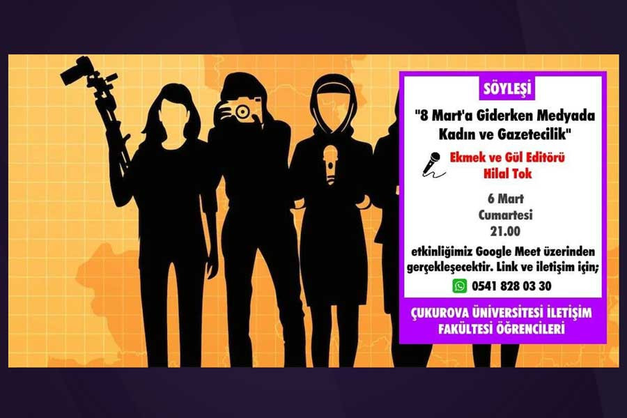 Çukurova Üniversitesi İletişim Fakültesi öğrencilerinin online olarak düzenlediği medya ve kadın etkinliğine Ekmek ve Gül Editörü Hilal Tok konuk olacak.