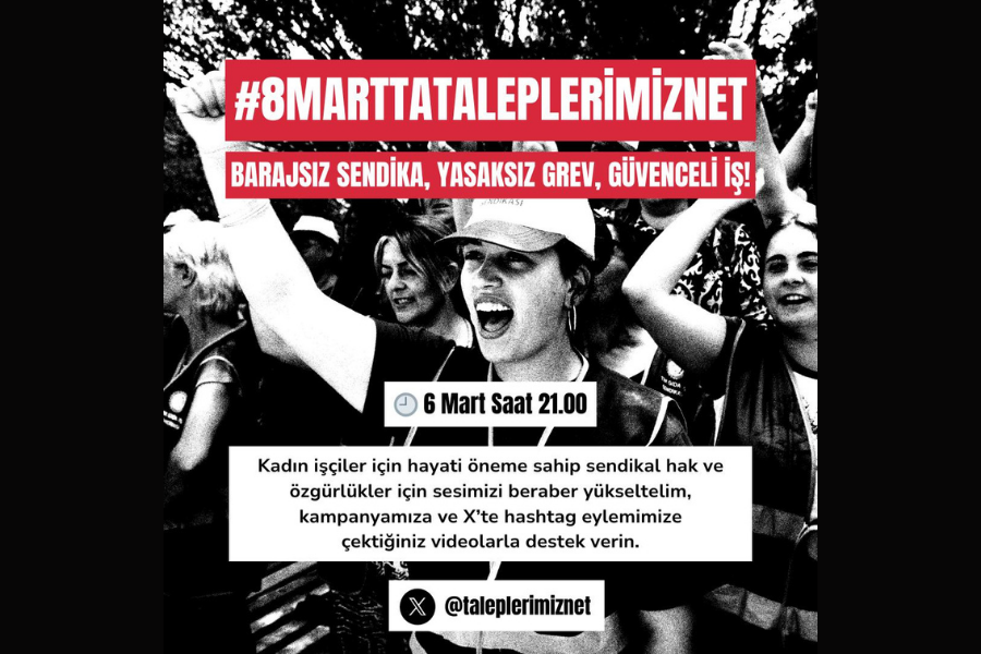 8 Mart’a giden yolu yürürken insanca çalışma koşulları, insanca yaşam talebimizi bu kampanya ile meydanlardan yükselip ülkenin dört bir yanında duyulmaması imkansız hale getirelim.