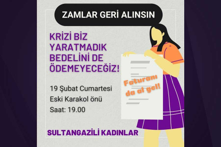 Sultangazili Kadınlar ‘Krizi biz yaratmadık, bedelini de biz ödemeyeceğiz’ diyerek faturalarıyla, tencereleriyle tüm kadınları eyleme çağırıyor.