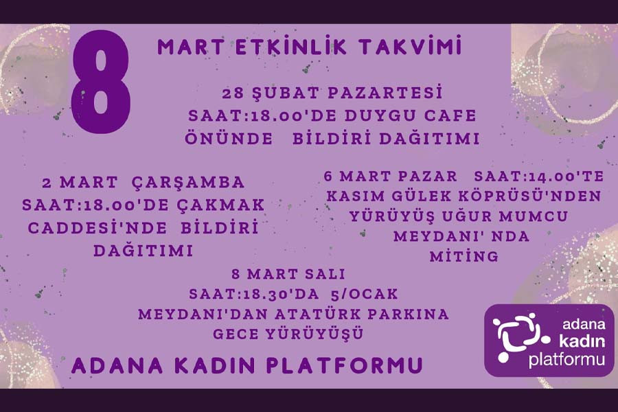 Adana Kadın Platformu bildiri dağıtarak kadınları 8 Mart mitingine çağırdı.