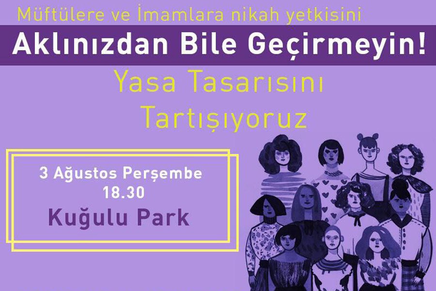 Ankara Kadın Platformu Müftülüklere nikah yetkisi veren yeni yasa tasarısını tartışmak için Ankaralı kadınları 3 Ağustos’ta Kuğulu Park’a çağırıyor