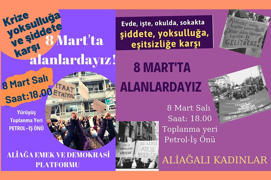 Aliağa Emek ve Demokrasi Platformu ve Aliağalı kadınlar 8 Mart'ta krize, yoksulluğa ve şiddete karşı alanlara çağırıyor.