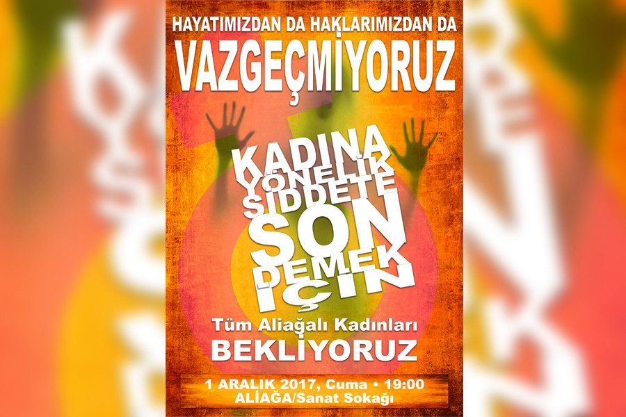 Aliağa’da yaşayan kadınlar geçtiğimiz haftalarda bir araya gelerek, Türkiye’de yaşanan şiddet, taciz ve tecavüze karşı bir arada mücadele etme kararı aldı. Daha önce ilçede kadın mücadelesine dair bir birlikteliğin sağlanmadığını söyleyen, içlerinde mahalle muhtarı, kent konseyi üyesi, öğretmen, öğrenci, işçi ve işsiz pek çok kadının da bulunduğu Aliağalılar, 25 Kasım Kadına Yönelik Şiddetle Mücadele Günü dolayısıyla yaptıkları toplantıda sokağa çıkma kararı aldılar.