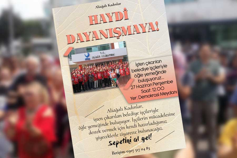 Biz ne yapacağız? Bu kentin gerçek sahipleri olan bizler her gün çocuklarının geleceği, kendi hakları için direnen işçilere selam vermekten, yanınızdayız demekten geri mi duracağız. Aliağa’da yaşanan her hak gaspı bizlerin geleceğini, iş güvencesini tehlikeye atıyor. Gelin o çadırda direnen, işlerini geri isteyen Aliağa Belediyesi işçilerine bu halkın sahip çıktığını gösterelim. Gelin “biz bu yetkiyi sana işçileri işten çıkar, yıllardır bize emek veren işçileri bir günde kapının önüne koy diye vermedik” diyelim. “Sen bu seçimi onların emeği olmasa kazanamazdın, biz senden adil bir yönetim beklerdik” diyelim. Bu günden söyleyelim bunu, beş yıl daha geçmesini beklemeden söyleyelim. Kaynak yaratmak işçilerin ekmeğiyle oynayarak olmaz. Bizler Aliağa emekçileri olarak işten çıkarılan işçilerle buluşmaya hazırız. 27 Haziran Perşembe günü ekmeğimizi, yemeğimizi paylaşmak, aklımızdaki soruları bizzat muhataplarına sormak için Demokrasi Meydanı’ndaki çadıra, bizim gibi olanların yanına gidiyoruz. Bizleri birbirimize yabancıymışız gibi gösterenlere karşı, kendi kibrinin yetkisini bizden aldıklarını söyleyenleri boşa çıkarmak için Aliağa Belediyesi işçilerine desteğe gidiyoruz. Unutmayalım “27 haziran perşembe saat: 12.00’de en yüce değer emektir, belediye işçisi yalnız değildir” demek için buluşuyoruz. Sepetine bir ekmek, bir börek fazla koy, sen de gel!