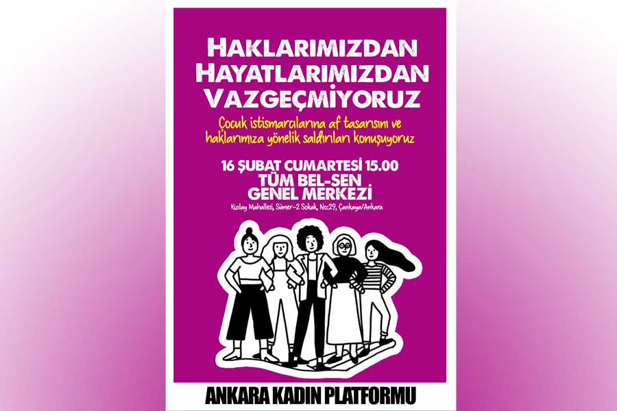 Çocuk istismarına af tasarısını ve kadınların haklarına yönelik saldırıları konuşacak olan kadınlar Ankaralı tüm kadınları buluşmaya çağırıyor.