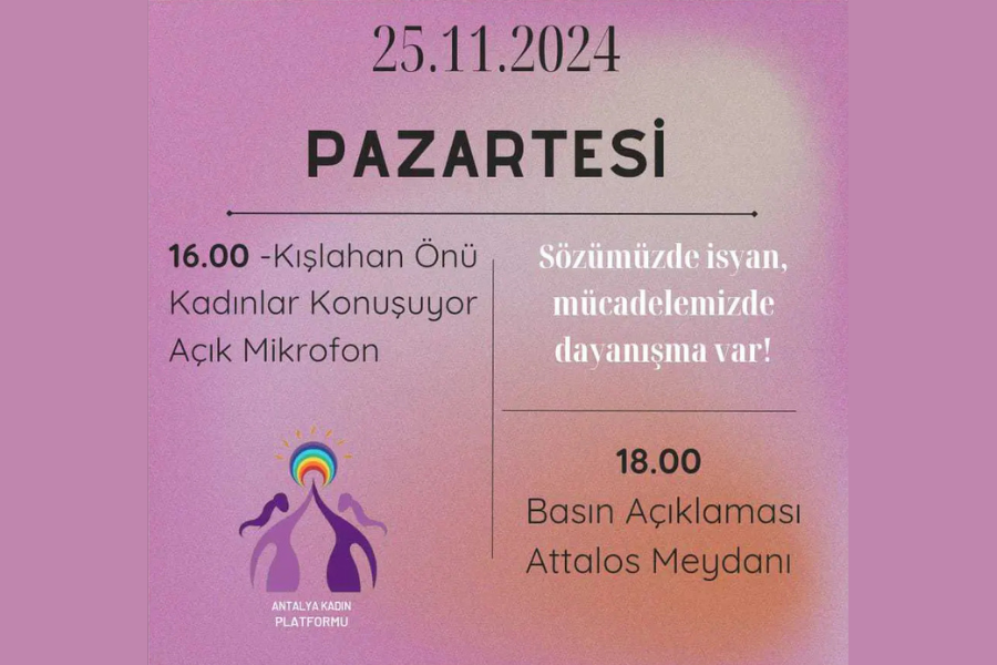 Antalya Kadın Platformu, 24 Kasım Pazar günü kadına yönelik şiddete karşı mitingde bir araya geliyor.