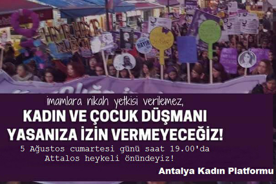 "Tüm kadınları geleceğimizin kuşatılmasına karşı birlikte hareket etmeye çağırıyoruz" diyen Antalyalı kadınlar 5 Ağustos Cumartesi günü saat 19:00'da Attalos heykeli önünde buluşacaklar.