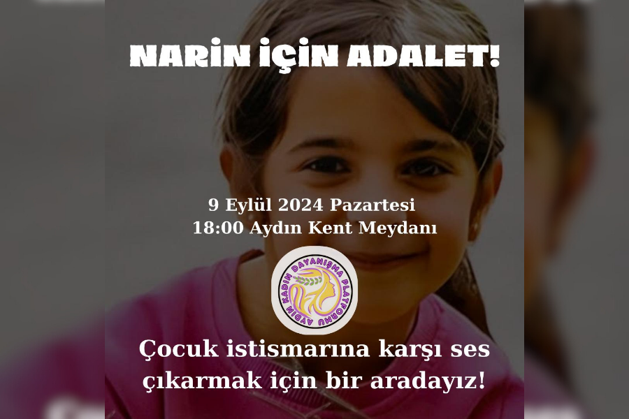 Aydın Kadın Platformu, Narin'in ölümü üzerine çocuklara yönelik şiddet ve istismarı protesto etmek üzere buluşacak.