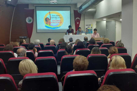 Balçova’da bir araya gelen kadınlar 25 Kasım günü dolayısıyla kadın emeğini ve haklarını konuştu.