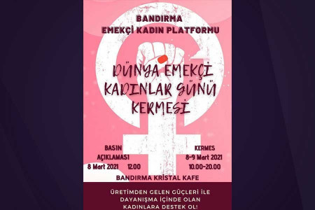 Bandırma Emekçi Kadın Platformu çağrısıyla kadınlar 8 mart günü, 12’de Bandırma Kristal Kafe’de Kermes etkinliğinde buluşacak.