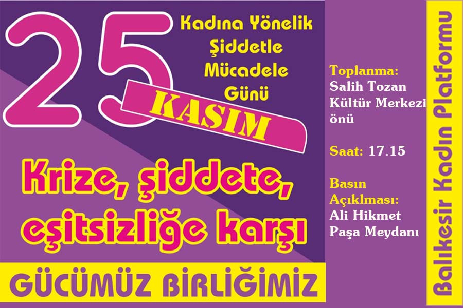 17:15’de Salih Tozan Kültür Merkezi önünde toplanma ve Ali Hikmet Paşa Meydanına yürüyüş.