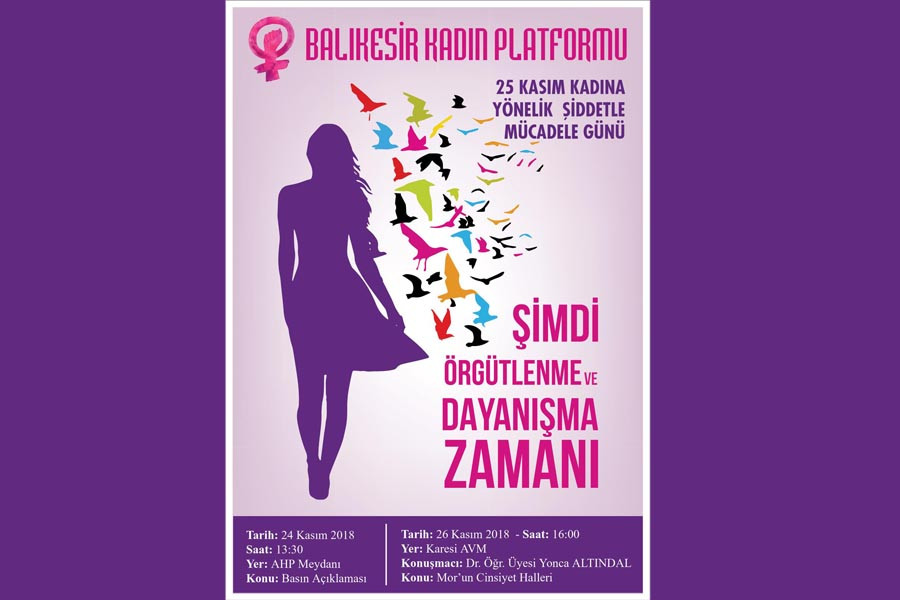 -Balıkesir Kadın Platformu 24 Kasım Cumartesi saat 13.30 Alihikmetpaşa meydanında basın açıklaması.
