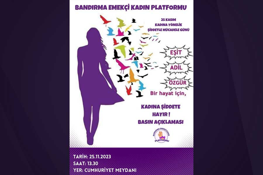Bandırma Emekçi Kadın Platformu 25 Kasım Cumartesi günü 13.30’da Bandırma Cumhuriyet Meydanı’nda basın açıklaması yapacak.