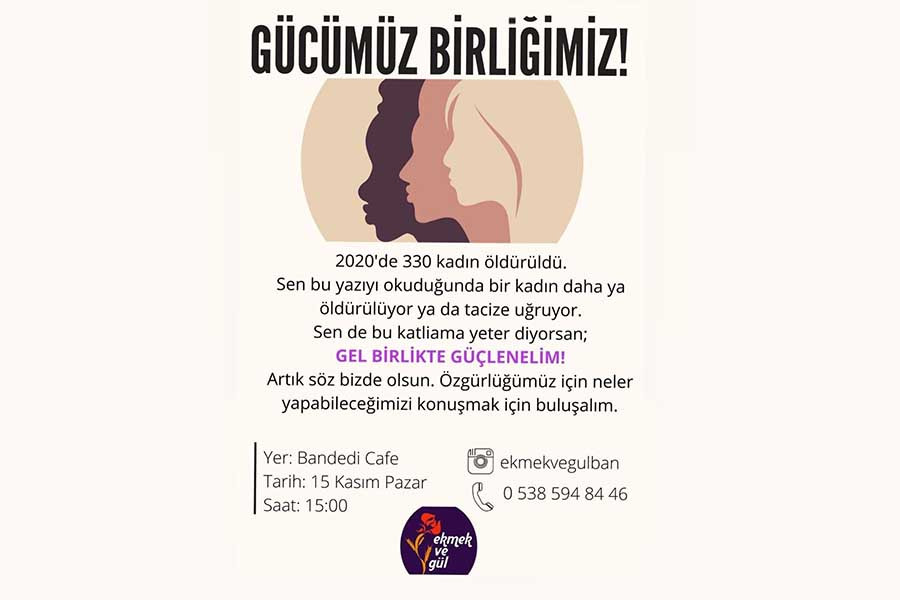 Sen de kadın cinayetlerine ve şiddete ‘dur’ demek ve bunun için mücadele etmek, söz söylemek istiyorsan Bandedi Cafe’deki buluşmamıza katıl.