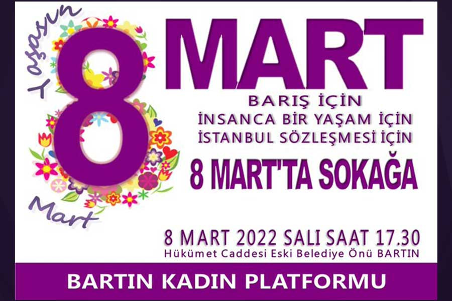 Bartın Kadın Platformu insanca bir yaşam için, İstanbul Sözleşmesi için tüm kadınları 8 Mart’ta sokağa çağırıyor.