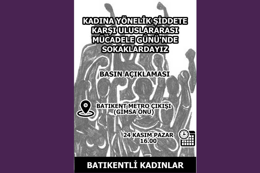 Batıkent Kardelen Mahallesindeki kadınlardan çağrı: ‘25 Kasım’a doğru Psikolog Aylin Akçay ile şiddeti ve şiddet karşısında yapabileceklerimizi konuşmak için bir araya geliyoruz.’