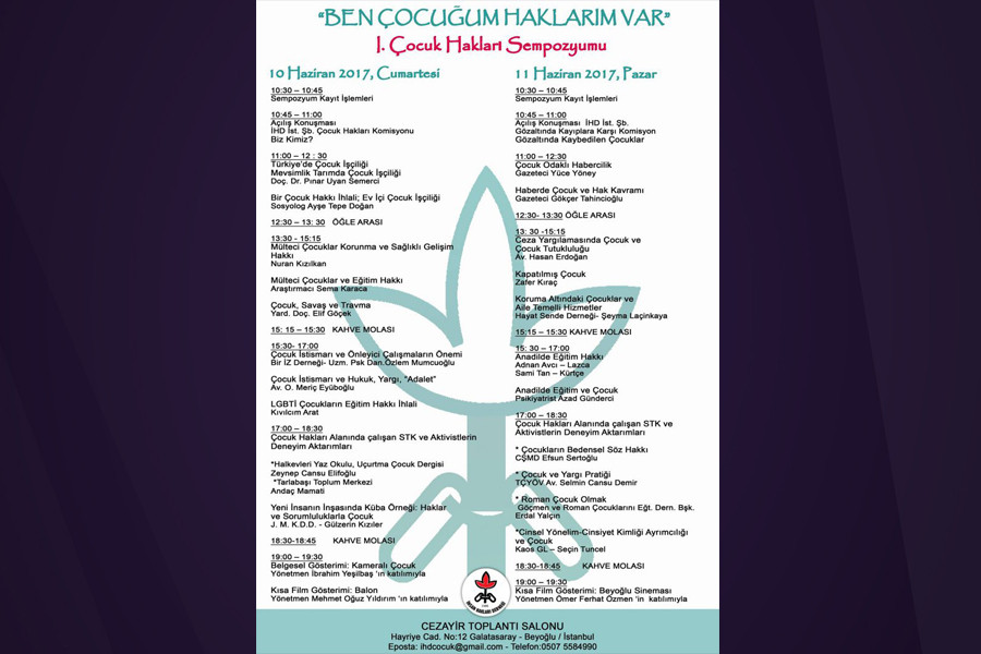 10-11 Haziran tarihlerinde Cezayir Toplantı Salonu’nda gerçekleştirilecek olan sempozyumda, çocuk çalışmaları alanında deneyimli akademisyenler, hak savunucuları, sosyologlar, avukatlar, gazeteciler, psikiyatristler ve psikologların bilgi ve deneyimlerini paylaşacağı oturumlar düzenlenecek.